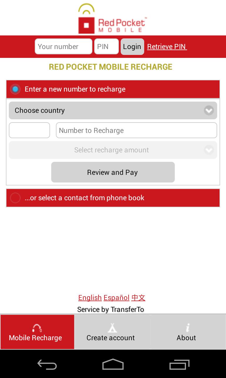 Red Pocket International Topup Serviceは、Ingenicoの会社であるTransfotoを搭載しています。